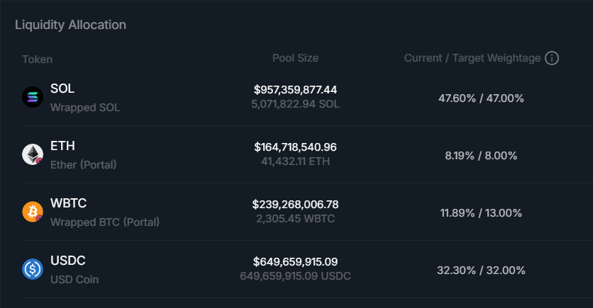 Each asset in the JLP has a target weightage which is the asset's pool size ratio against the entire pool's AUM.