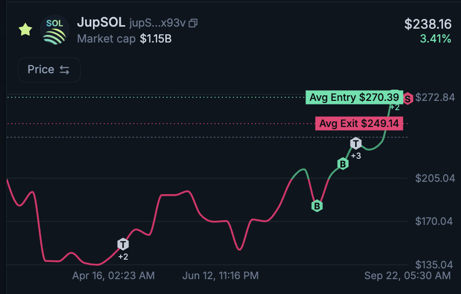 - Visit https://jup.ag/watch/positions and select the specific token. In the expanded view, you will be able to find the average entry and exit price.
