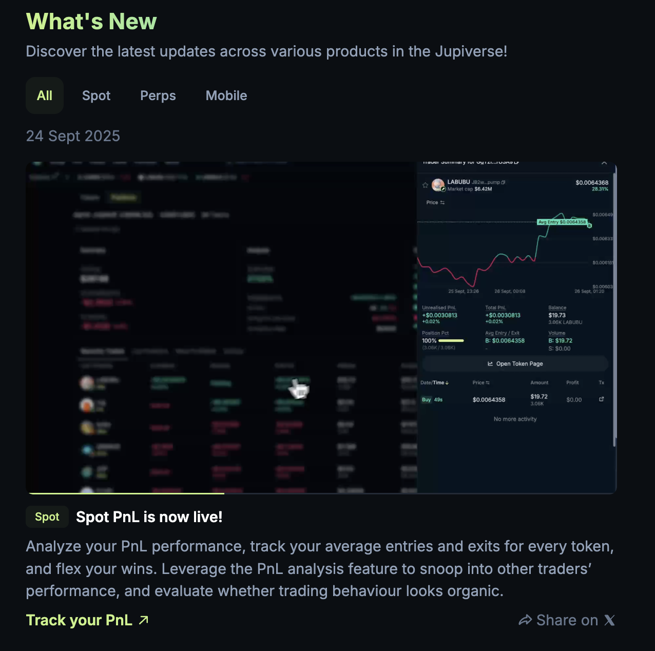 You can view all our latest updates across the Jupiter product suite on https://jup.ag/updates.