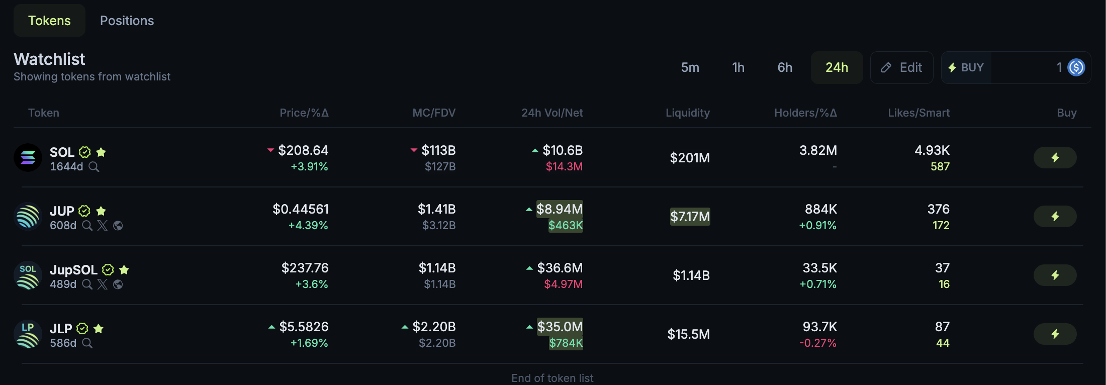 You can access your watchlist all across jup.ag, and on https://jup.ag/watch/tokens.