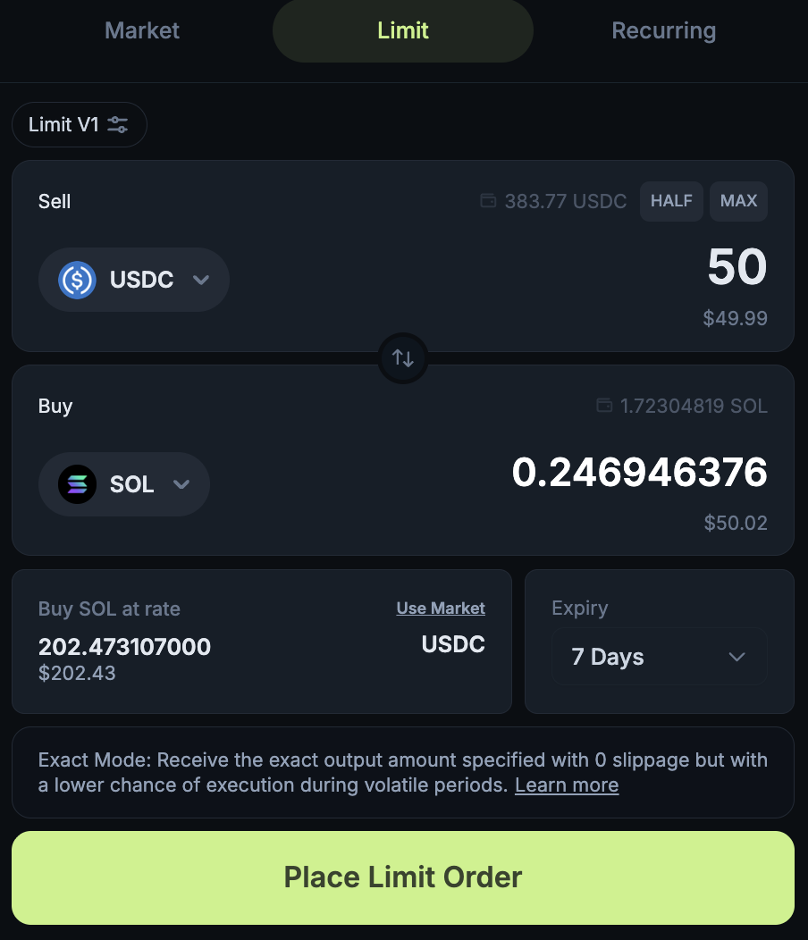 When setting up a Limit order on Limi v1, you can customize the following parameters: