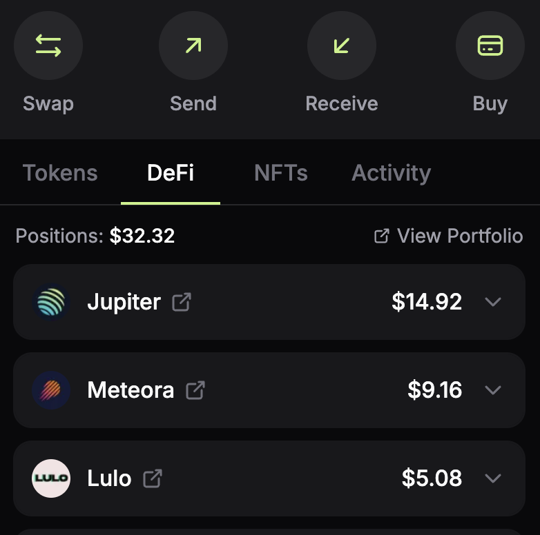 Yes, the Jupiter Extension shows a full overview of all DeFi positions (across 160+ Solana protocols) under the DeFi tab.
