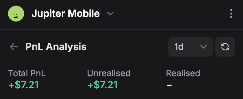 Clicking on it opens a detailed view with your total PnL, realized and unrealized PnL, and a breakdown by each asset - according to the timeframe of your choosing (1d, all-time).