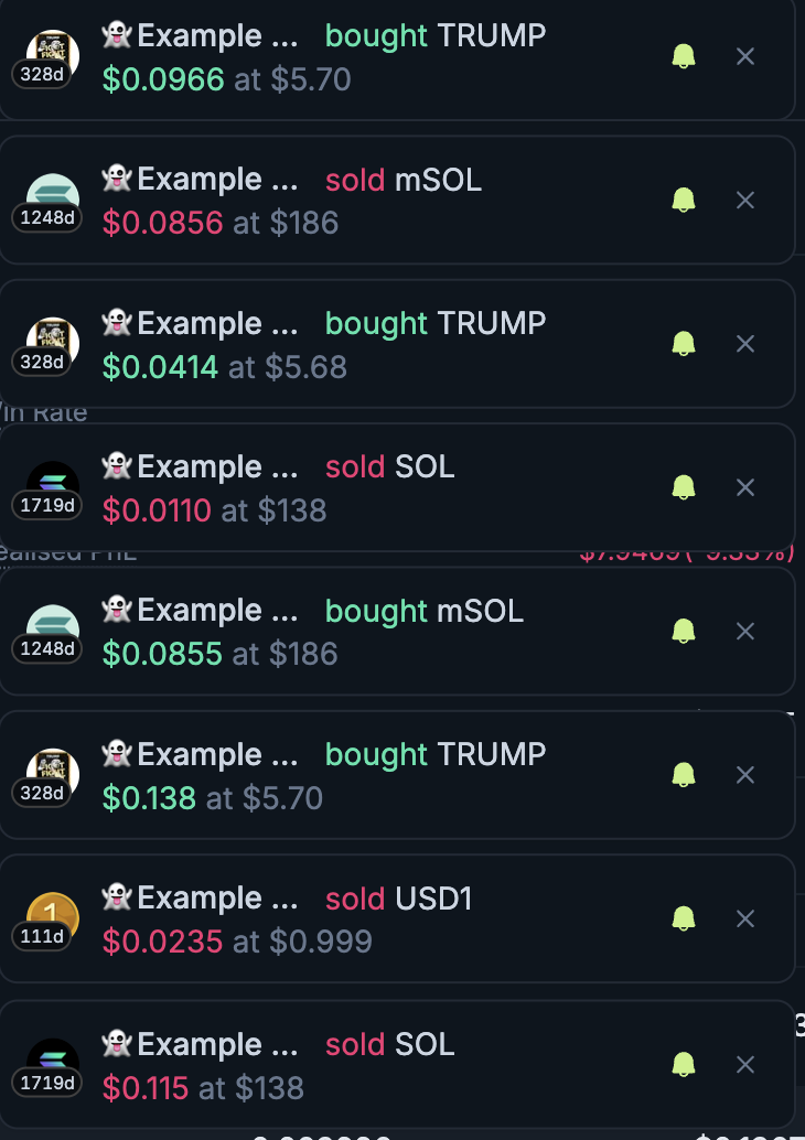 Rename the wallet and tap on the 'Track' icon to follow that wallet. Once tracked, you’ll be able to monitor its future trades in real-time.