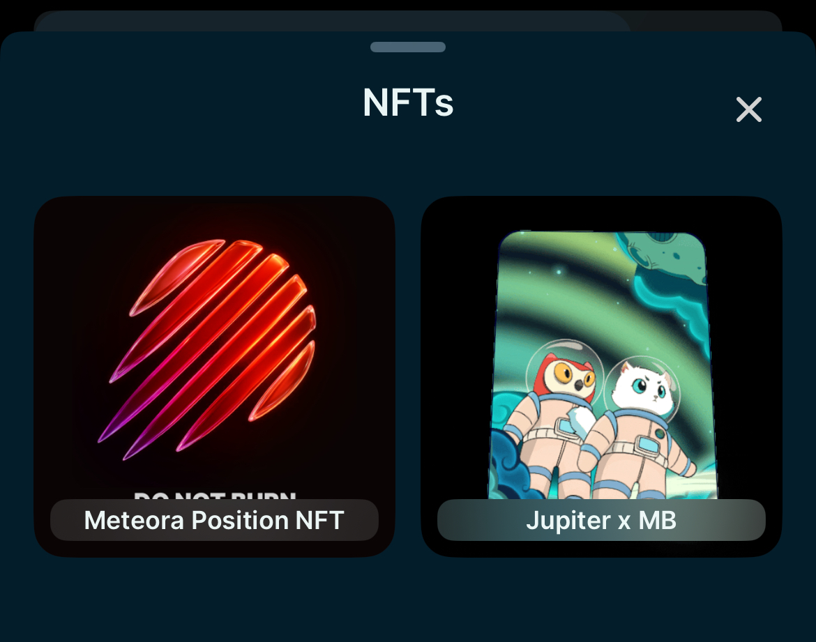 Note: Jupiter Mobile only supports viewing NFTs currently. Sending and trading NFTs are not available yet.